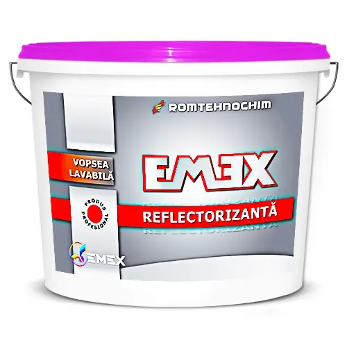 Vopsea Lavabila Reflectorizanta “Emex” - produs de noua generatie utilizat pentru finisarea de interior a oricarui tip de cladire, care necesita o particularizare a aspectului decorativ, nefiind restrictiva in nici un alt sens. Cu toate acestea, va intruni toate caracteristicile superioare ce o recomanda, doar in conditiile in care aplicarea se va face de personal calificat, cu specializare, si cu utilizarea de instrumente adecvate, operatiunile de aplicare fiind bine definite si specializate (cum ar fi suflarea microperlelor de sticla pe suprafata umeda).