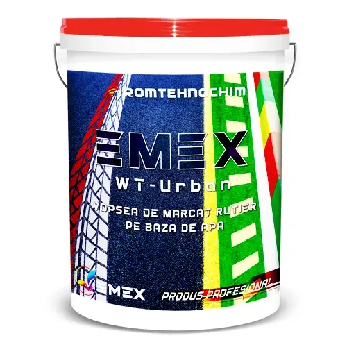 Vopsea pentru Marcaj Rutier pe Baza de Apa “Emex WT-Urban” - produs monocomponent, profesional, cu aplicabilitate dedicata, pe baza de emulsii acrilice de ultima generatie, materiale de adaos pentru duritate, cum ar fi faina de cuart si α-corindon, pigmenti si aditivi specializati, ce contribuie la uscare si etalare.