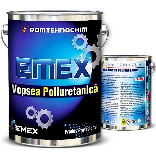 Vopsea Poliuretanica Bicomponenta “Emex” - produs de utilizare industriala si aplicare doar profesionala, cu rezultate remarcabile, destinat acoperirii decorative si de protectie pentru suprafete din lemn, metal, beton, zidarie, chiar exploatate in conditii de agresivitate chimica sau mecanica, la interior sau la exterior.